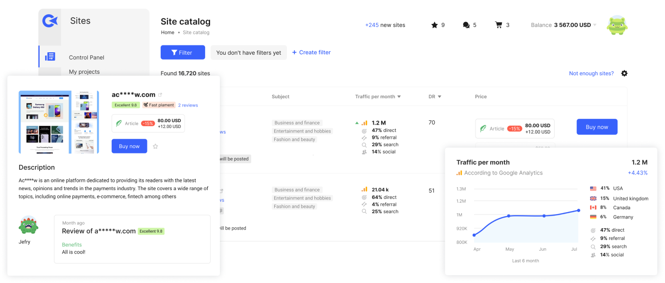 Read reviews from real advertisers for confident decision-making. You can also rate and leave feedback about your experience with the platform after each deal.