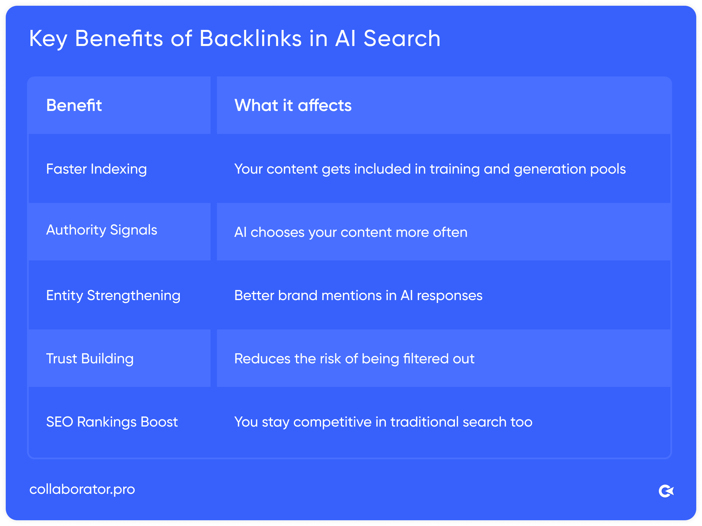For convenience, we’ve gathered the main advantages of links for getting noticed in AI search. Think of it as a crib sheet or checklist; whatever you call it, it’s both useful and easy to use.